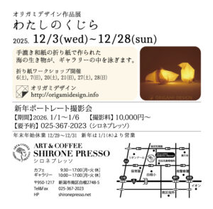 (※12/13,14は栃尾美術館にてワークショップ予定のため在廊いたしません)