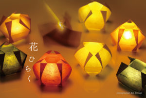 手漉き和紙を折って作った灯りのインスタレーションです。